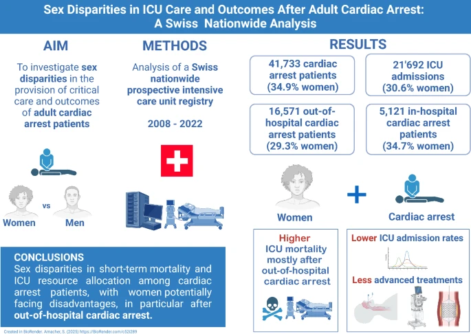 Obwohl Frauen auch an den typischen Myokardinfarkt-Symptomen wie Brustschmerz und Ausstrahlung in den linken Arm leiden können, treten bei ihnen häufiger zusätzlich weitere, unspezifische Beschwerden wie Müdigkeit, Leistungsschwäche, Schwitzen, Übelkeit, Oberbauchschmerzen und Schmerzen im Schulter- und/oder Nacken und Kieferbereich auf [55]. Dies trägt dazu bei, dass die Rate an verspätet erkannten Myokardinfarkten bei Frauen erhöht ist [56, 57]. Frauen suchen im Schnitt später medizinische Hilfe auf und auch das Gesundheitspersonal kann die Symptome des Myokardinfarkts bei Frauen missinterpretieren. Die Prognose beim Myokardinfarkt ist bei Frauen schlechter, nicht nur durch verzögerte Diagnostik, sondern auch aufgrund seltenerer Revaskularisationsmassnahmen, weniger konsequenter leitliniengerechter Therapie und einer erhöhten Komorbiditätsrate der vergleichsweise älteren Frauen [58]. Auch im Jahr 2022 zeigten Daten, dass Frauen mit KHK weniger leitliniengerechte Therapie erhalten und dass die höhere Mortalitätsrate persistiert, auch nach Altersadjustierung [59]. Das soziale Geschlecht scheint eine wichtigere Rolle für die langfristige Prognose nach einem akuten Koronarsyndrom zu spielen. Während das weibliche biologische Geschlecht sich eher verbessernd hinsichtlich des Überlebens auswirkt, ist weibliches soziales Geschlecht mit einem schlechten Outcome assoziiert. Unter weiblichem sozialem Geschlecht werden dabei gesellschaftlich geprägte Rollen, Erwartungen und strukturelle Rahmenbedingungen verstanden, die Frauen beispielsweise durch geringeren Zugang zu Ressourcen, spätere Diagnosestellung, eine geringere Wahrnehmung oder Gewichtung ihrer Symptome sowie eine teilweise unzureichende Berücksichtigung in Prävention und Therapie benachteiligen können. Daten aus der Schweiz zeigen, dass Frauen nach Herzstillstand ausserhalb des Krankenhauses eine höhere Mortalität auf der Intensivstation haben als Männer, seltener auf eine Intensivstation verlegt werden und weniger fortgeschrittene Therapien erhalten [60]. [55][56][57][58][59][60]
